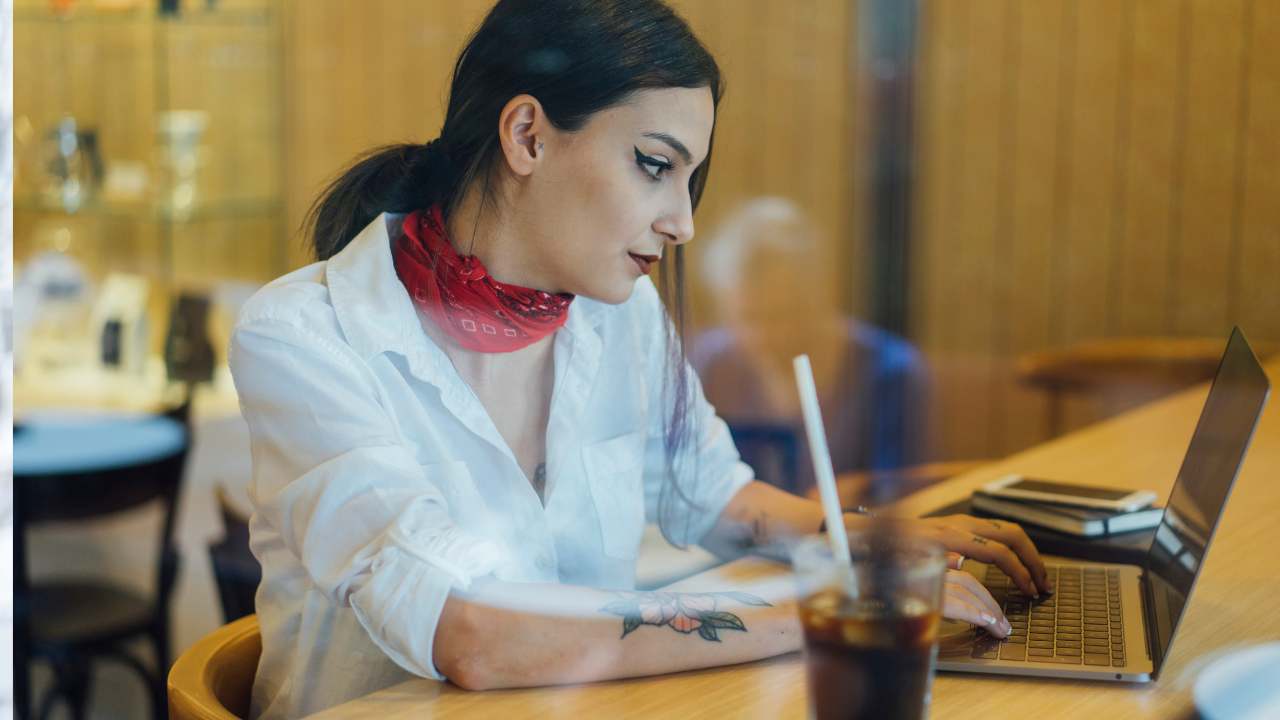 Jika anda tidak memiliki tempat khusus untuk bekerja, atau sering mengunjungi café atau coworking space yang berbeda-beda, anda bisa mencari spot yang menyediakan meja yang lebih tinggi dari kursinya. Anda juga bisa mempertimbangkan membeli meja laptop lipat, yang bisa anda bawa kemana-mana dan bisa anda letakan di atas meja café yang pendek. Ini agar anda mendapatkan tinggi meja yang pas dengan pandanggan mata saat menatap laptop.