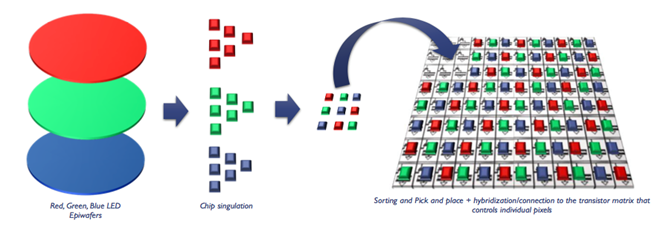 Misalnya jika semua piksel, merah, hijau, dan biru menyala dengan intensitas penuh, maka piksel akan menampilkan warna putih. Namun, jika hanya satu piksel yang menyala, maka tampilan warna akan sesuai dengan warna yang bersangkutan.