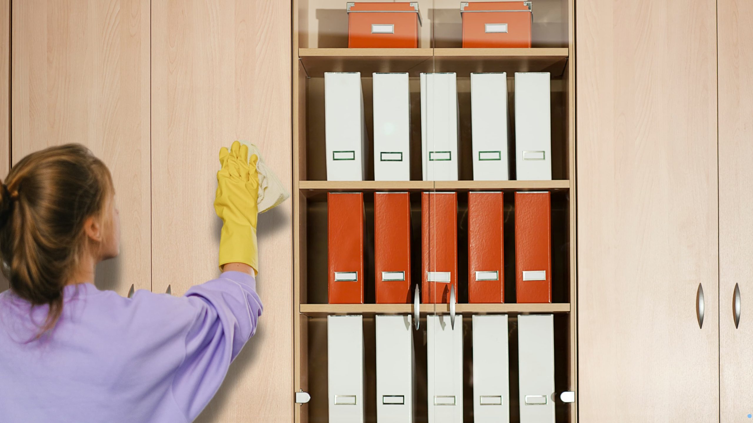 - Gunakan air bersih atau cairan khusus pembersih lemari arsip sesuai dengan bahannya. Hindari menggunakan pembersih yang mengandung bahan kimia keras, seperti pemutih atau amonia, karena bisa merusak permukaan lemari. Khususnya yang terbuat dari kayu atau logam.