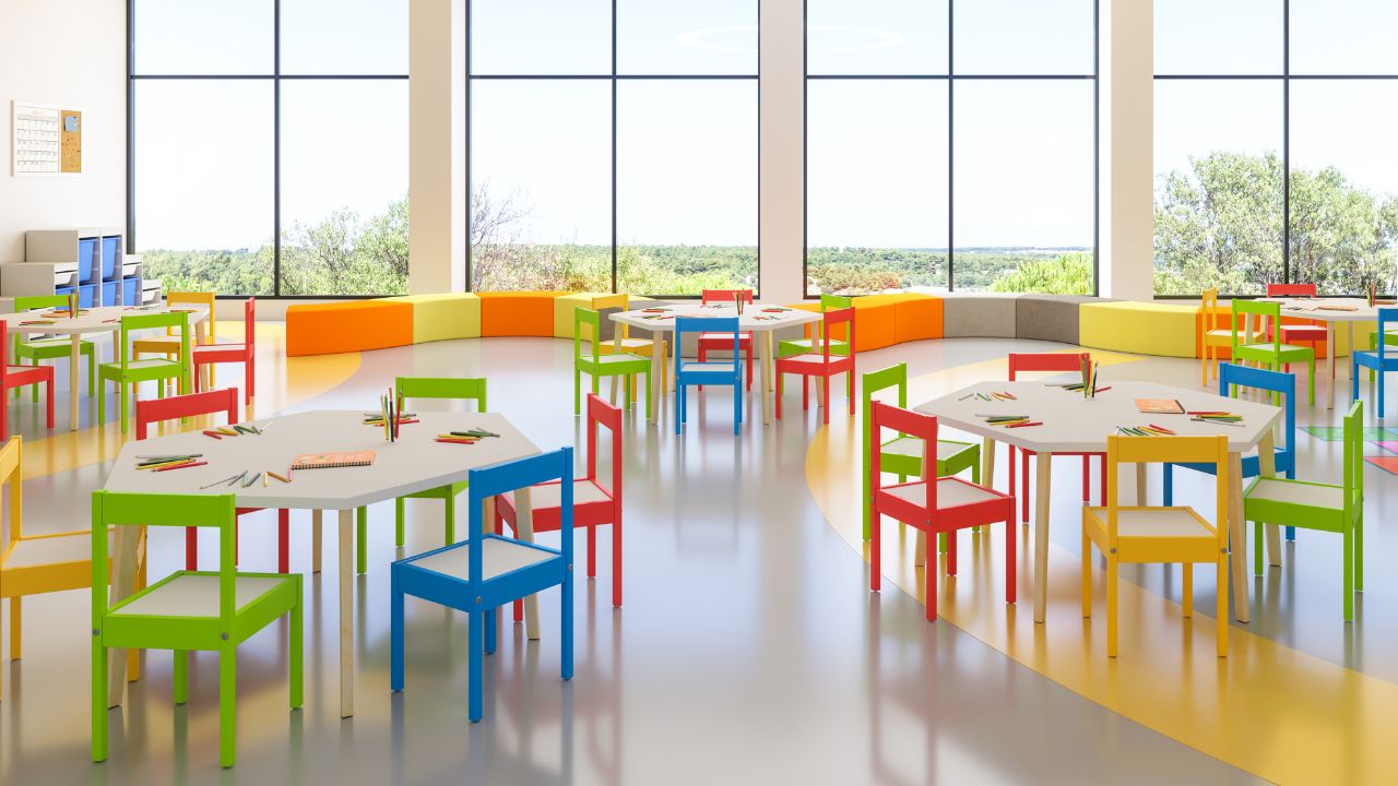 Berbeda dengan sekolah tingkat lanjut yang biasanya menggunakan warna netral, kelas PAUD justru memanfaatkan warna-warni sebagai bagian dari metode pembelajaran. Bangku berwarna dapat membantu anak mengenali dan membedakan warna sejak dini, sekaligus melatih koordinasi visual mereka, serta dapat menghindarkan anak dari rasa bosan selama belajar.