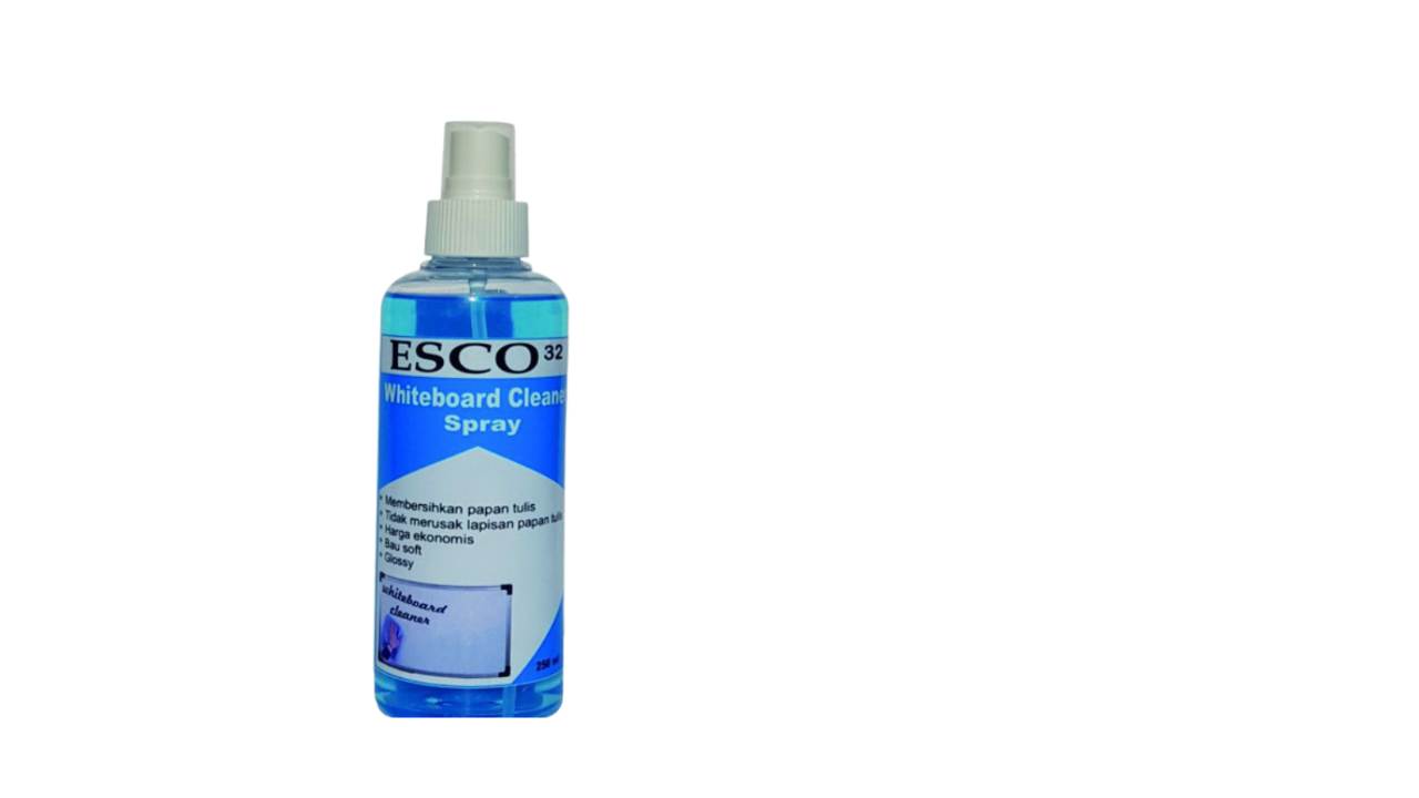 Pilihan lain yang juga cukup dikenal di kalangan pengguna whiteboard di Indonesia adalah Esco Whiteboard Cleaner. Cairan pembersih ini berfungsi untuk mengangkat noda tinta marker, termasuk noda lama yang sudah mengering. Esco Whiteboard Cleaner memiliki formula yang aman untuk permukaan papan tulis sehingga tidak merusak lapisan whiteboard. Produk ini bisa anda beli di toko peralatan kantor, toko alat tulis lokal, dan juga di marketplace seperti Shopee, Tokopedia, dan lainnya.