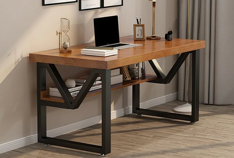 Dengan rangka besi yang ramping dan permukaan kayu atau MDF, meja ini ideal untuk ruang kerja yang sederhana namun tetap elegan. Model ini biasanya lebih ringan dan mudah jika ingin memindahkannya, karena tidak semua material berbahan besi yang berat.
